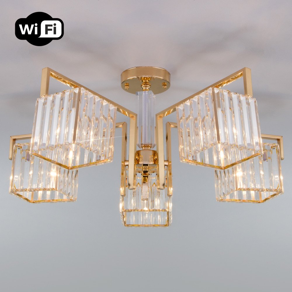 Станьте первым, кто оставит отзыв о товаре Потолочная люстра Eurosvet April 10126/5 золото/прозрачный хрусталь Strotskis Smart (10117/5).