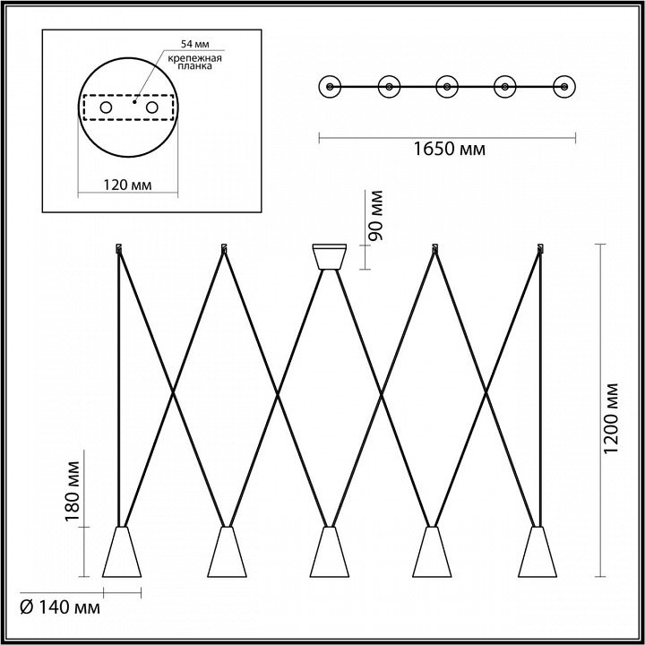 Точная форма - Несколько плафонов (Для подвесных люстр, потолочных люстр и подвесных светильников): Плафоны вниз из пластины