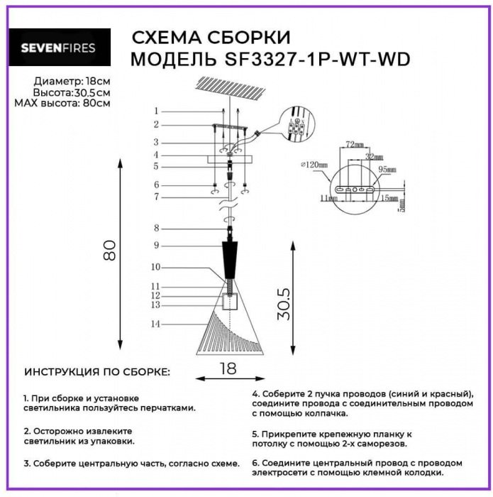 Станьте первым, кто оставит отзыв о товаре Подвесная люстра Seven Fires Noema SF3327/1P-WT-WD.