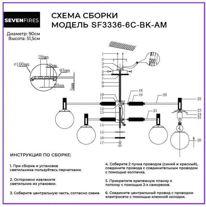 Станьте первым, кто оставит отзыв о товаре Потолочная люстра Seven Fires Luara SF3336/6C-BK-AM.