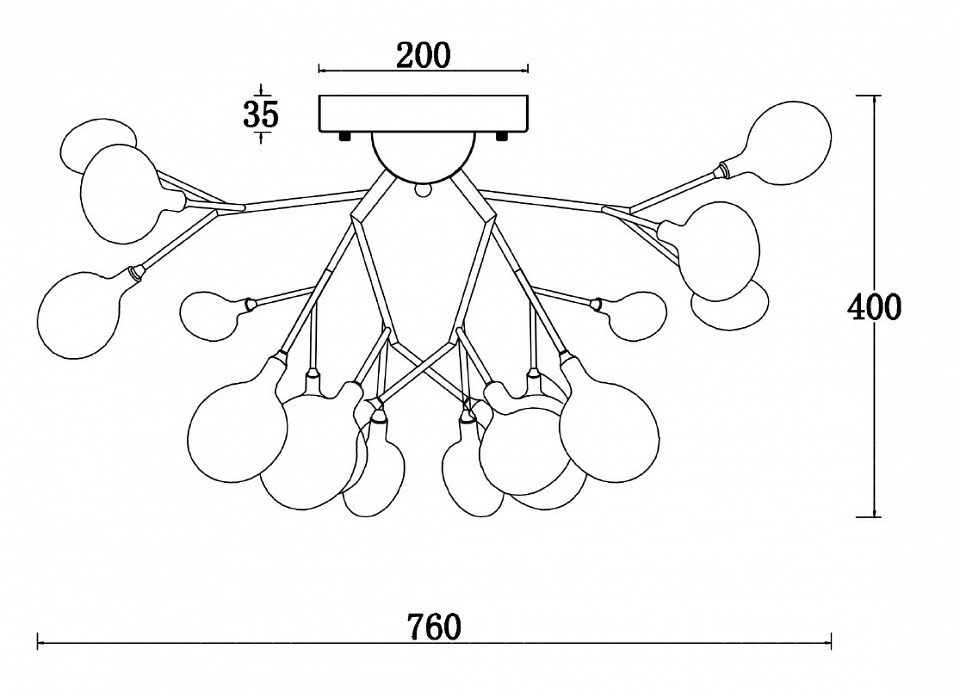 Основная форма светильника (Для подвесных люстр, потолочных люстр и подвесных светильников): Без плафонов