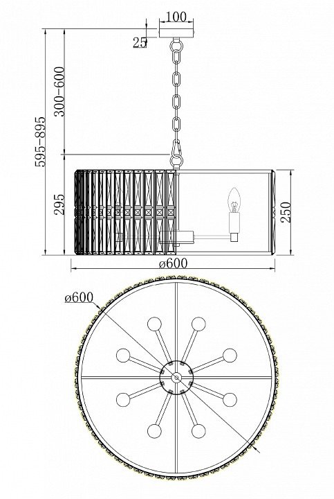 Длина подвеса, мм: 600