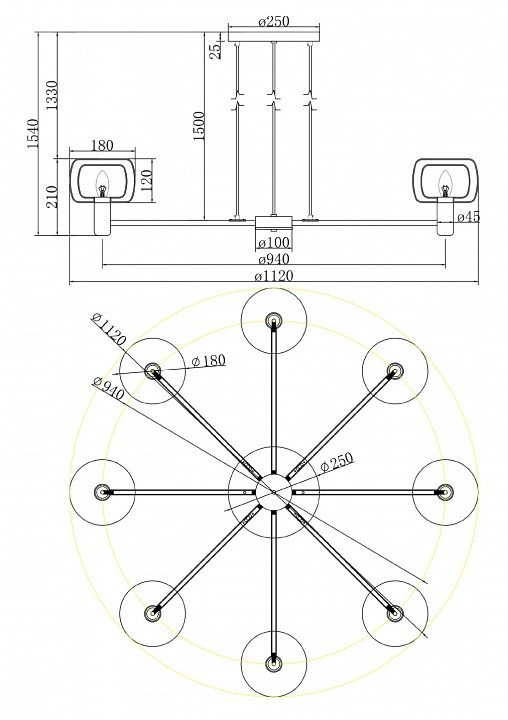 Основная форма светильника (Для подвесных люстр, потолочных люстр и подвесных светильников): Несколько плафонов