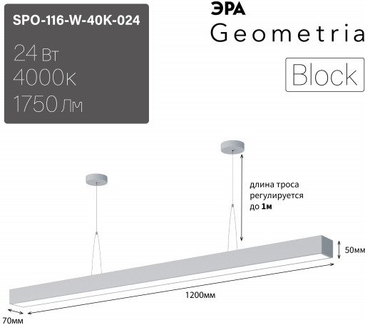 Станьте первым, кто оставит отзыв о товаре Подвесной светодиодный светильник Geometria ЭРА Block SPO-116-W-40K-024 24Вт 4000К белый Б0050548.
