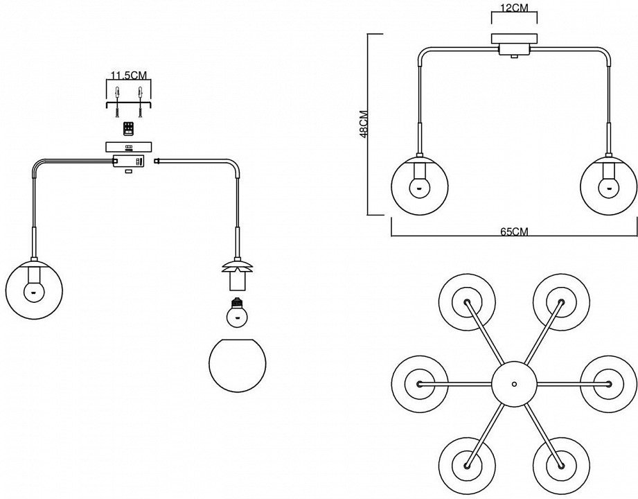 Основная форма светильника (Для подвесных люстр, потолочных люстр и подвесных светильников): Несколько плафонов