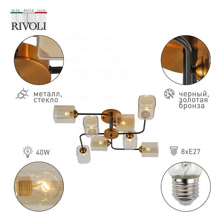 Станьте первым, кто оставит отзыв о товаре Потолочная люстра Rivoli Merula 9142-308 Б0054881.