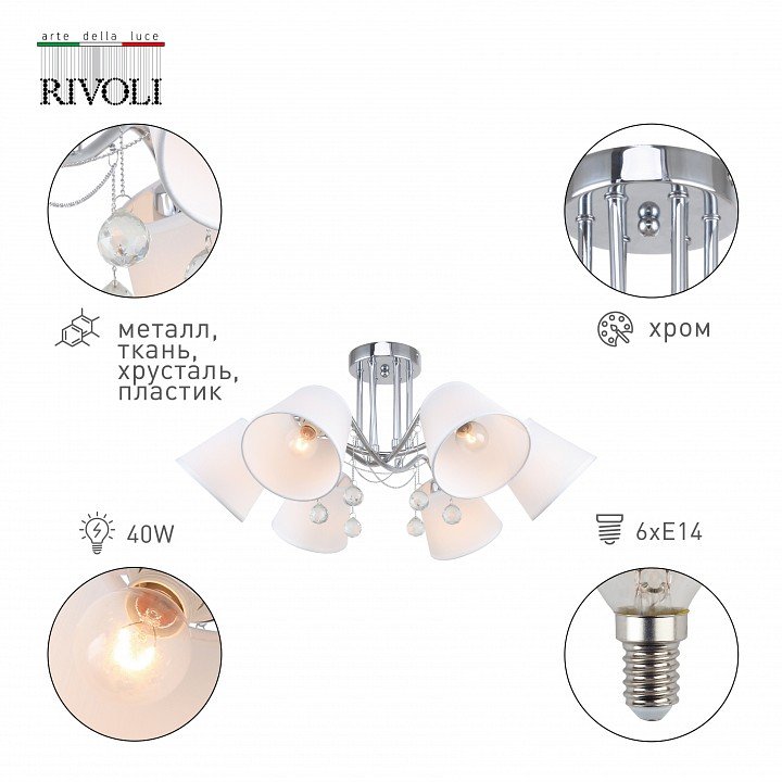 Станьте первым, кто оставит отзыв о товаре Потолочная люстра Rivoli Betsy 2069-306 Б0055486.