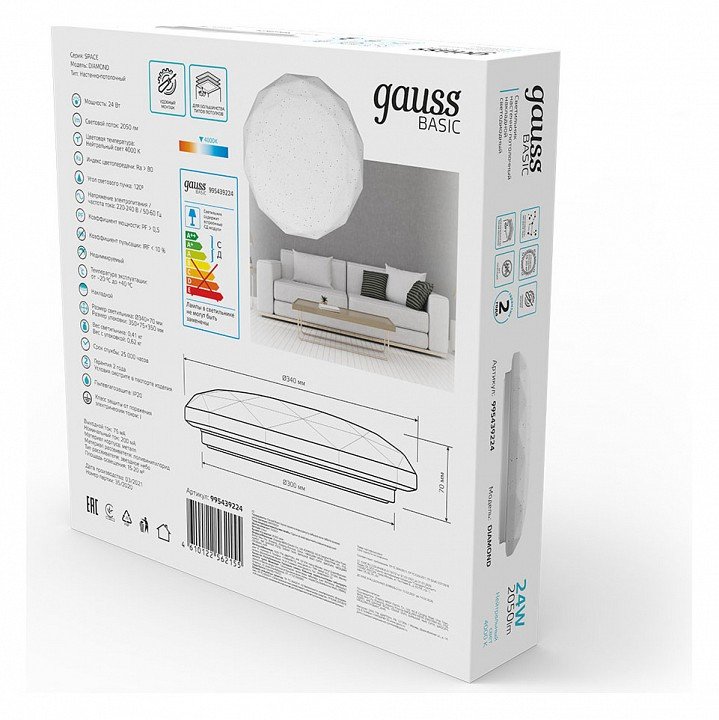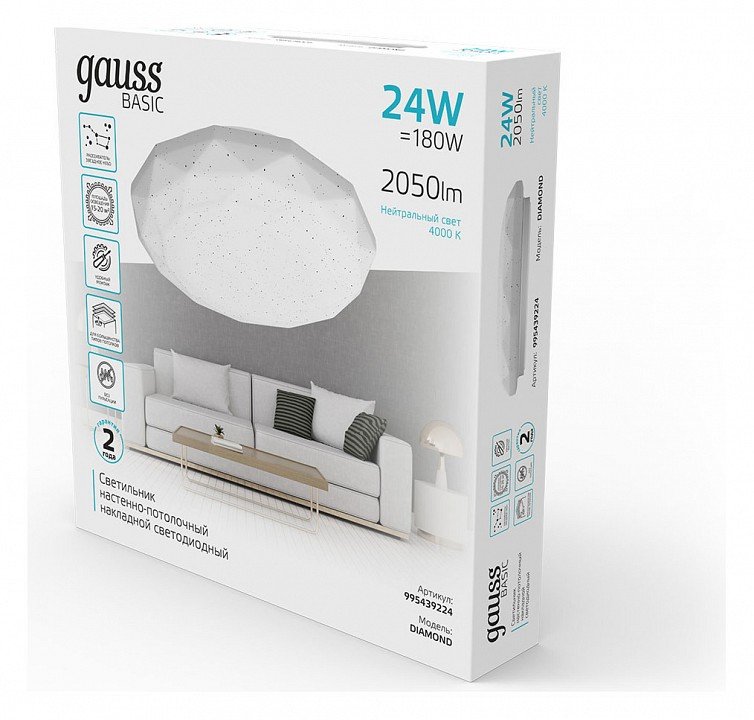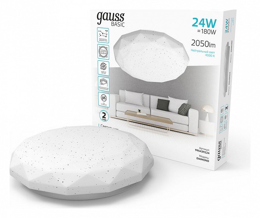 Станьте первым, кто оставит отзыв о товаре Потолочный светодиодный светильник Gauss Basic Space Diamond 995439224.