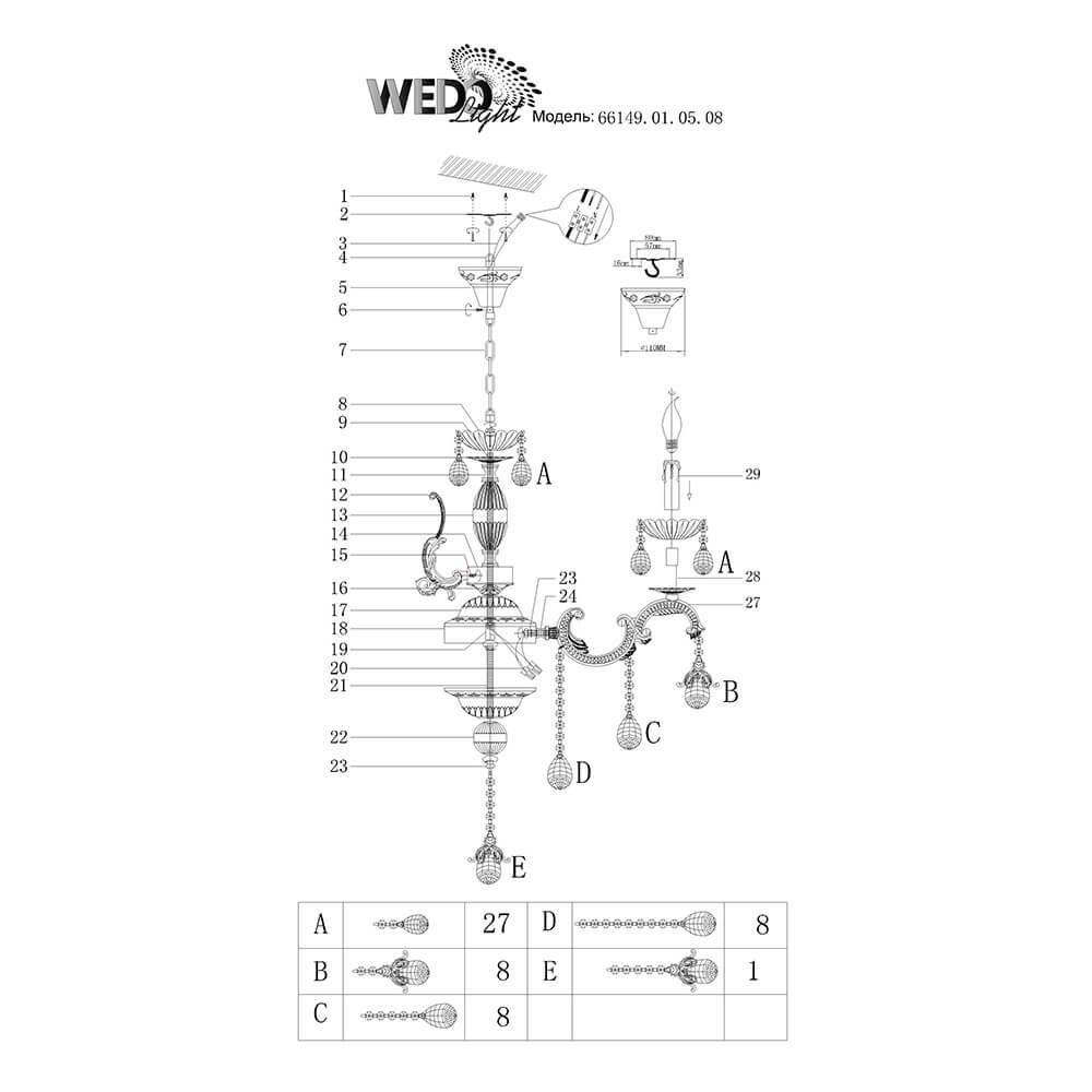 Подвесная люстра Seven Fires Мюрайол 66149.01.05.08