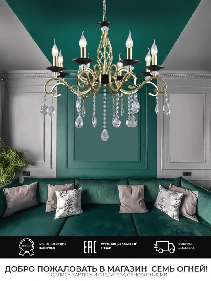 Станьте первым, кто оставит отзыв о товаре Подвесная люстра Seven Fires Elek WD3596/8H-GD-BK-CL.