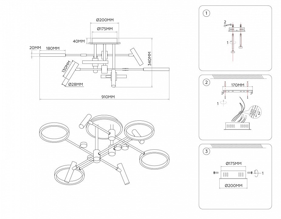 Основная форма светильника (Для подвесных люстр, потолочных люстр и подвесных светильников): Несколько плафонов