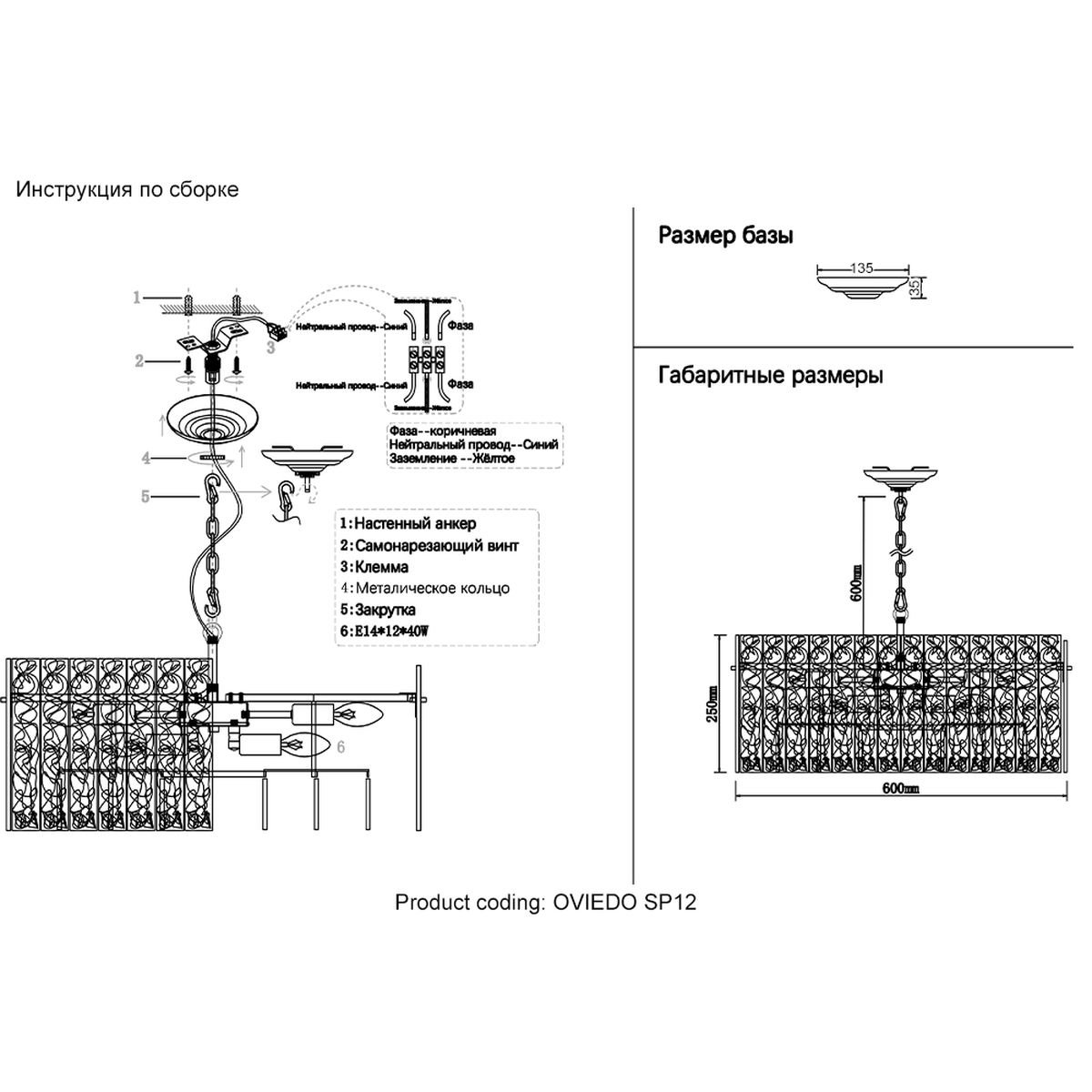 Станьте первым, кто оставит отзыв о товаре Подвесная люстра Crystal Lux Oviedo SP12.