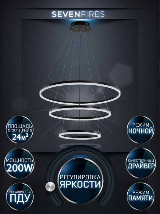 Главная Люстры и потолочные светильники Подвесной светодиодный светильник Seven Fires Morits SF5021/3P-BK
