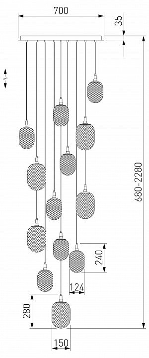 Основная форма светильника (Для подвесных люстр, потолочных люстр и подвесных светильников): Несколько плафонов