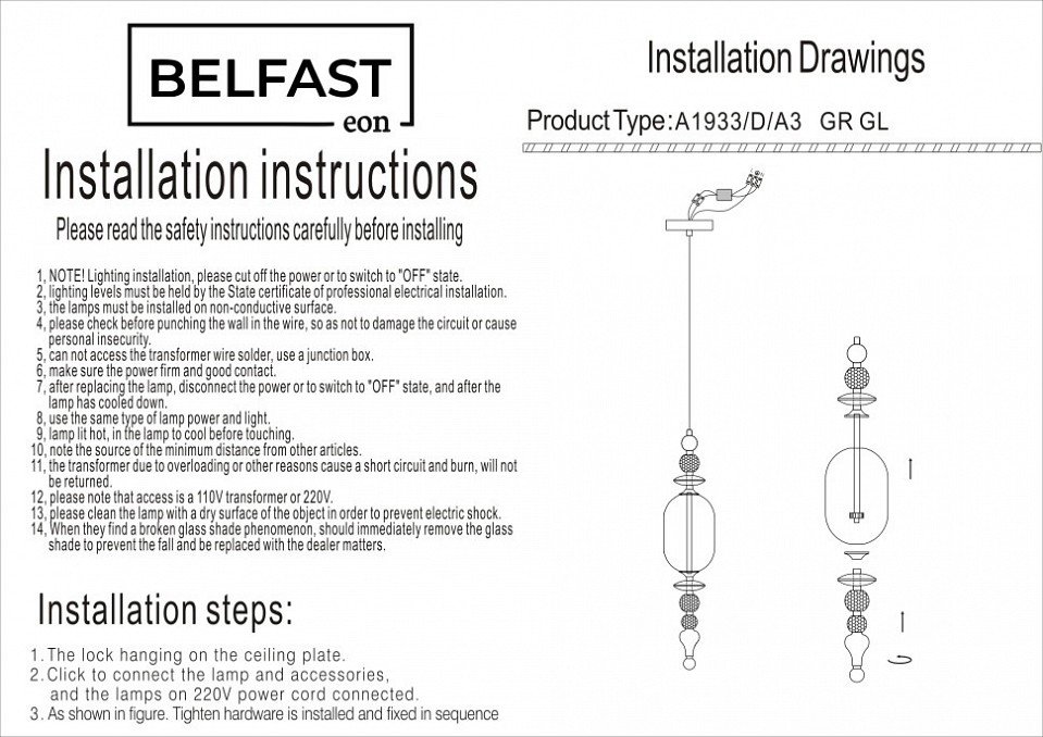Станьте первым, кто оставит отзыв о товаре Подвесной светильник Belfast Herbison A1933-D-A3 GR GL.