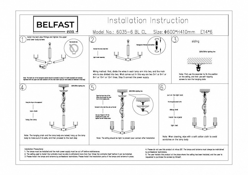 Станьте первым, кто оставит отзыв о товаре Подвесная люстра Belfast Malone 6035-6 BL CL.