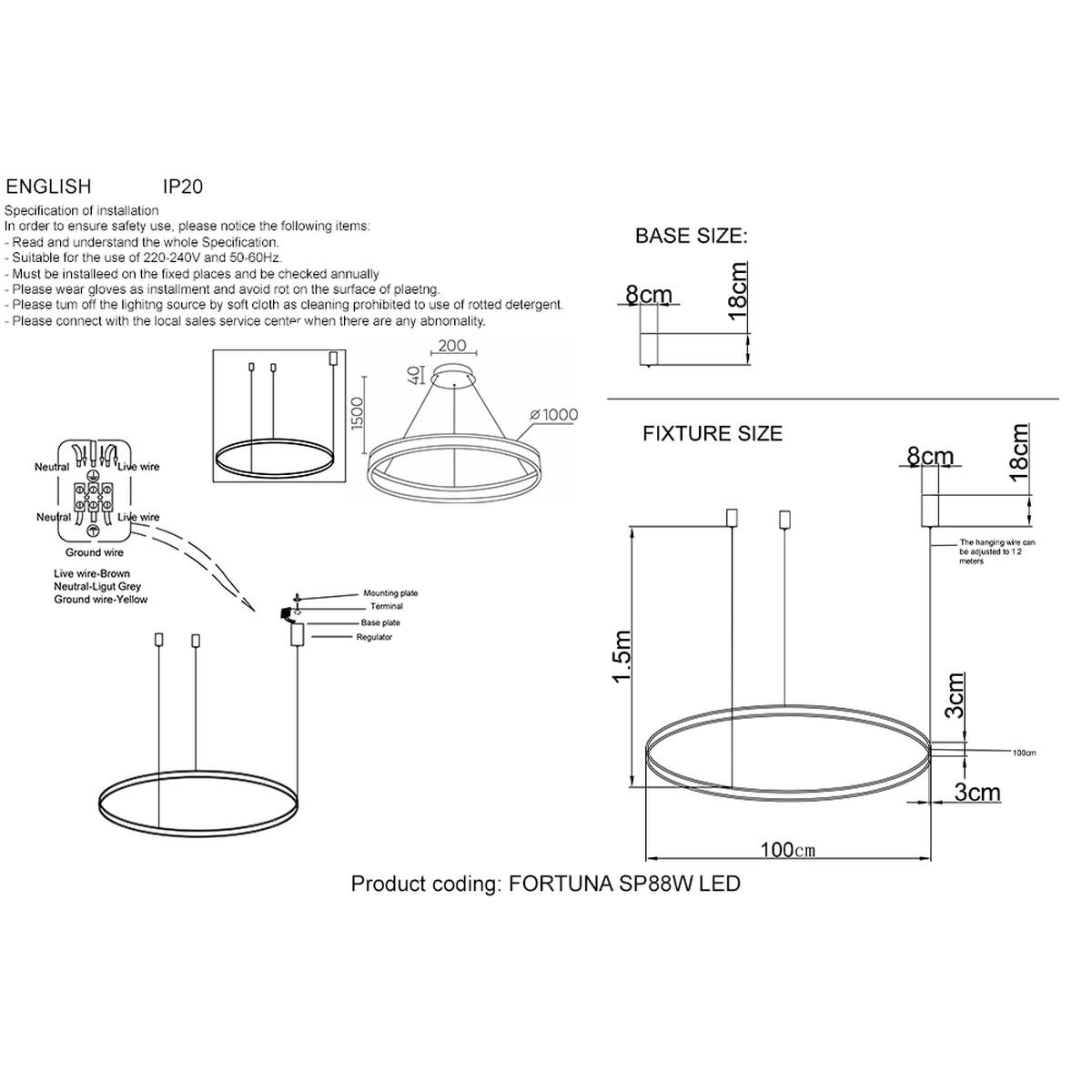 Длина подвеса, мм: 1500