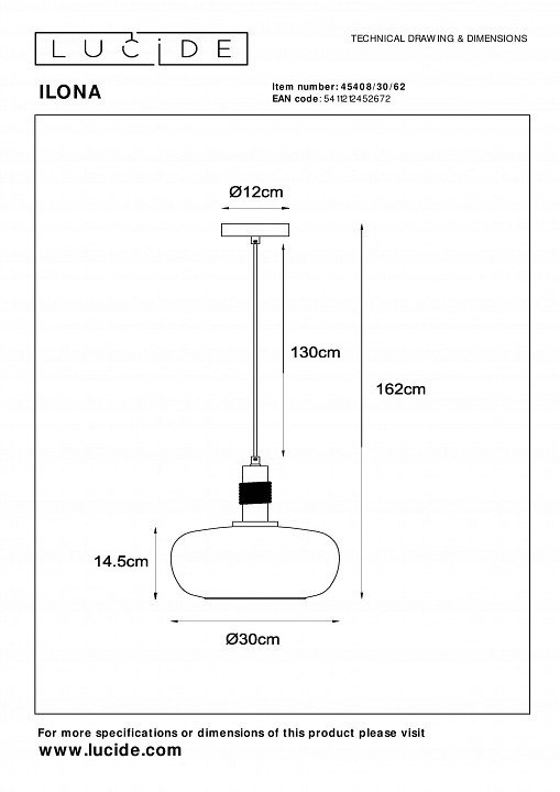 Станьте первым, кто оставит отзыв о товаре Подвесной светильник Lucide Ilona 45408/30/62.