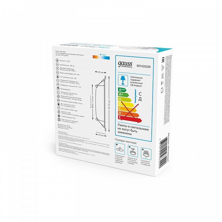 Станьте первым, кто оставит отзыв о товаре Встраиваемый светильник Gauss Elementary 997420209.