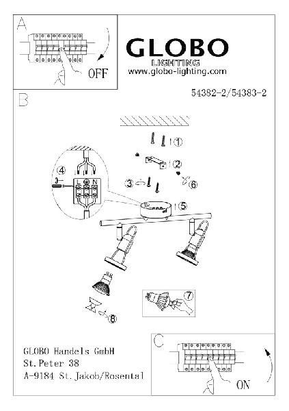 Настенно-потолочный светильник Globo Rail 54382-2