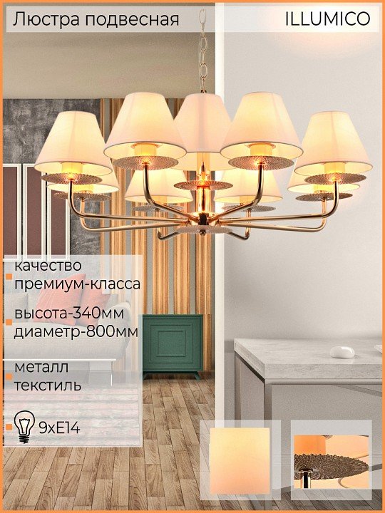 Главная Люстры и потолочные светильники Подвесная люстра Illumico IL6197-9P-17 GD