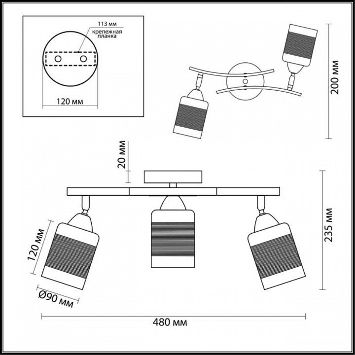 Количество ламп: 3