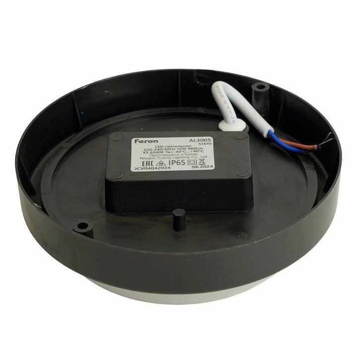 Главная Люстры и потолочные светильники Светильник светодиодный пылевлагозащищённый Feron AL3005 в пластиковом корпусе 18W 6500K 220V IP65 черный 51472
