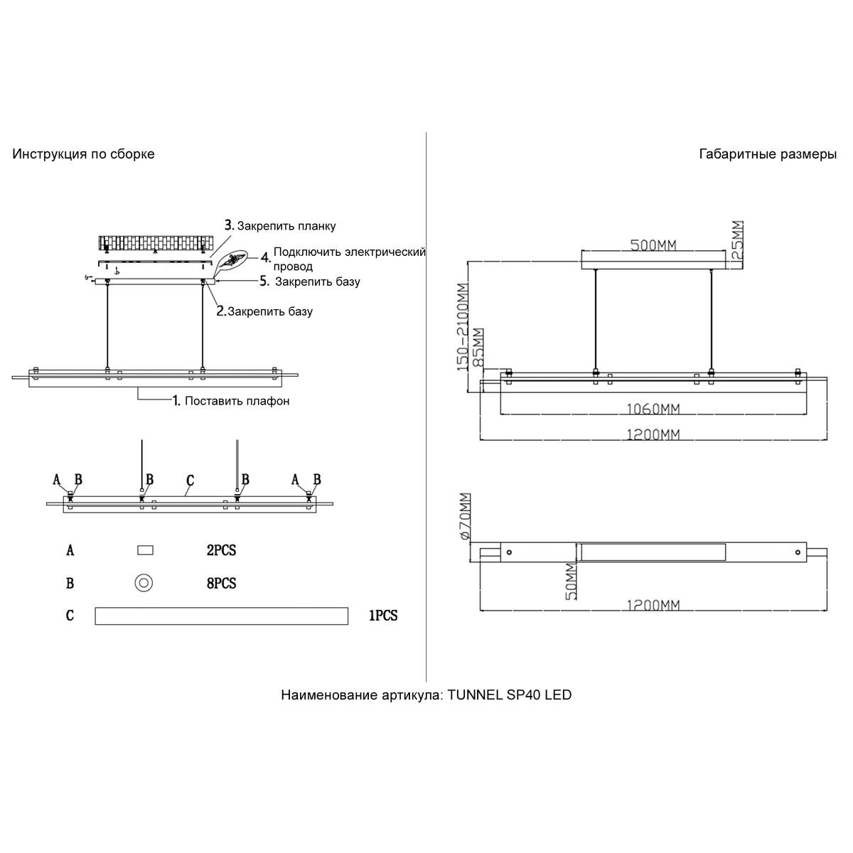 Длина подвеса, мм: 2015