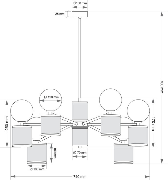 Точная форма - Несколько плафонов (Для подвесных люстр, потолочных люстр и подвесных светильников): Плафоны из центра вверх