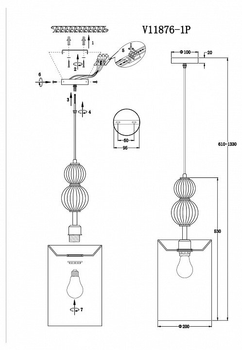 Длина подвеса, мм: 1330