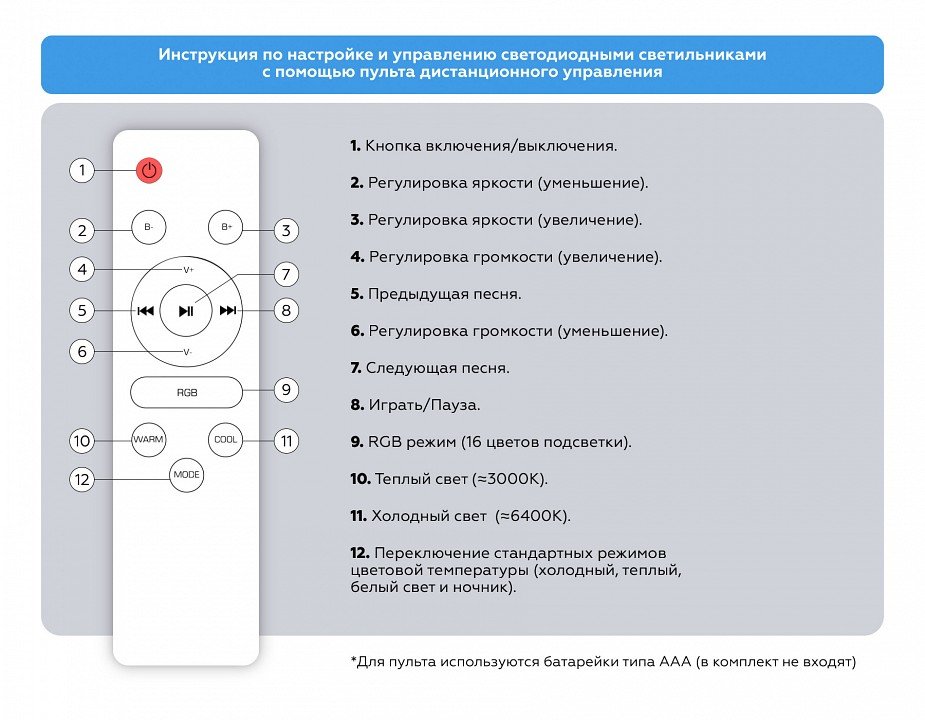 Наличие выключателя, диммера или пульта ДУ: пульт ДУ