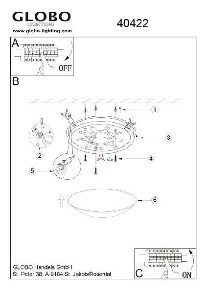 Станьте первым, кто оставит отзыв о товаре Настенно-потолочный светильник Globo Palila 40422.