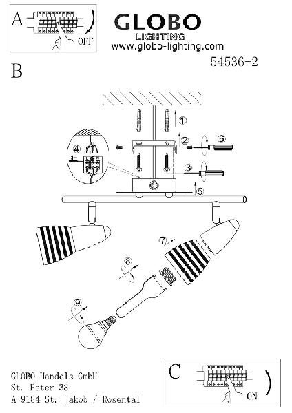 Настенно-потолочный светильник Globo Caleb 54536-2