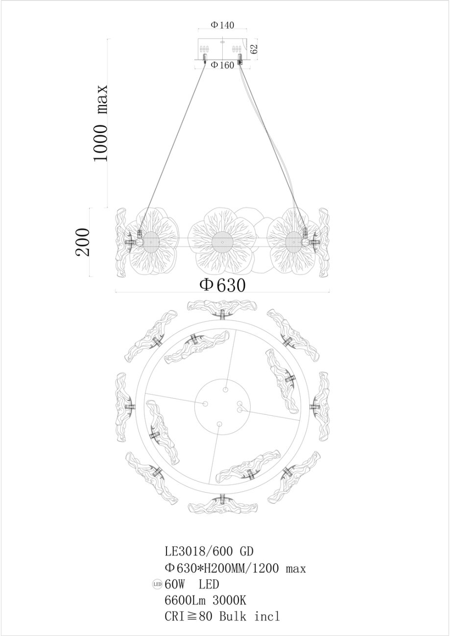 Подвесная люстра Violetta LE3018/600 GD