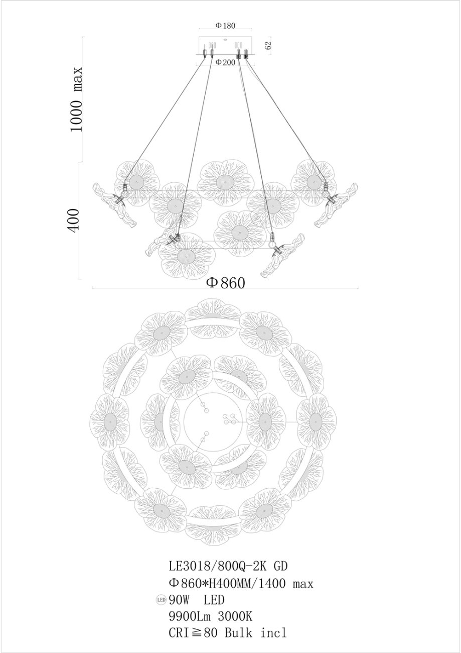 Подвесная люстра Violetta LE3018/800Q-2K GD