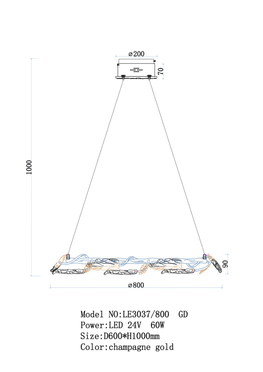Станьте первым, кто оставит отзыв о товаре Подвесная люстра Olivia LE3037/800 GD.