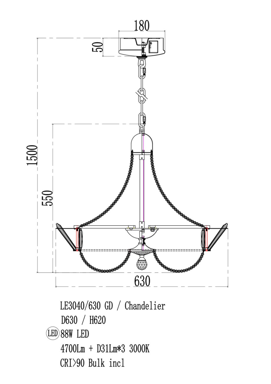 Главная Люстры и потолочные светильники Подвесная люстра Jade LE3040/630 GD