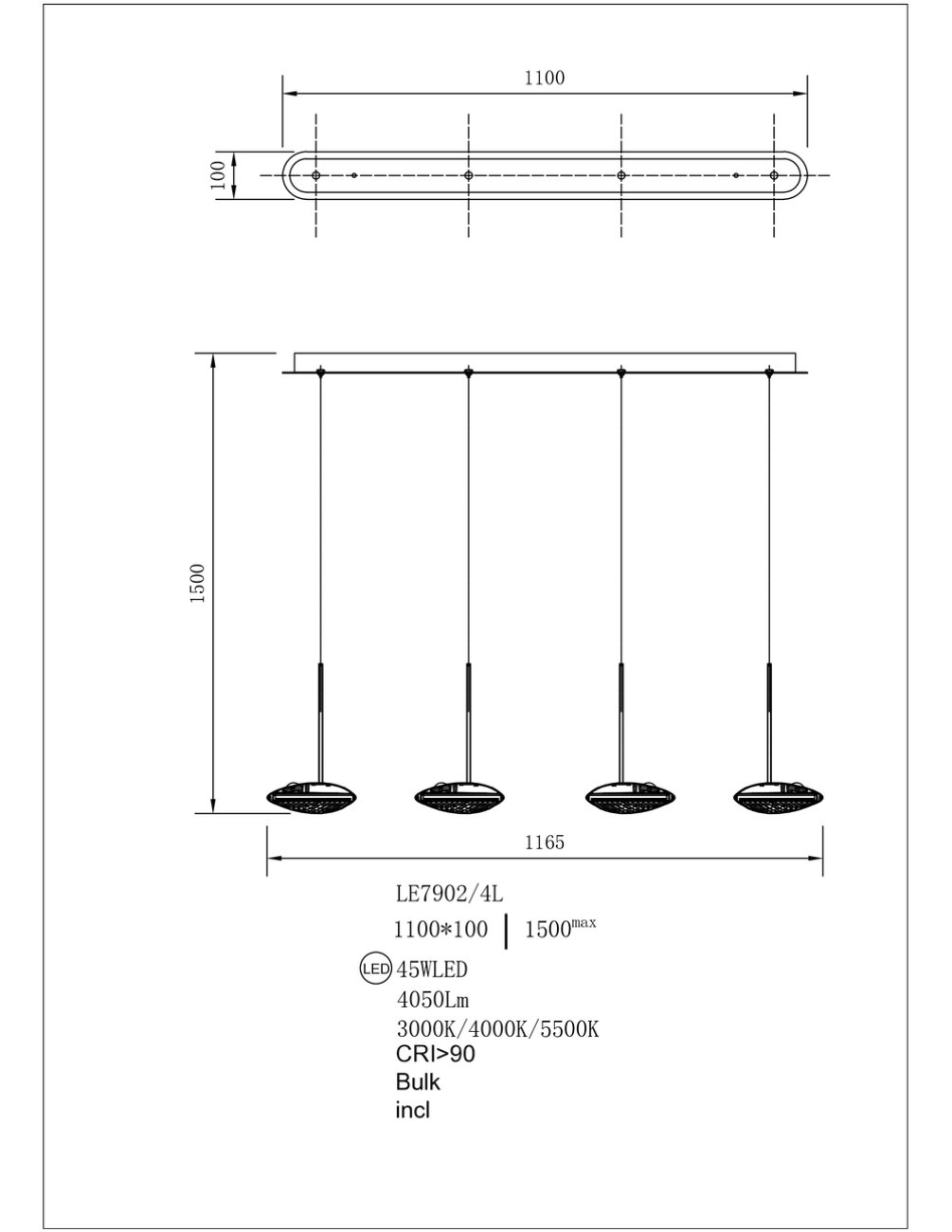 Длина, мм: 1165