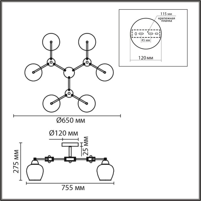Форма плафона: Полукруг
