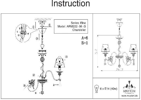 Станьте первым, кто оставит отзыв о товаре Подвесная люстра Maytoni Elina ARM222-06-G.