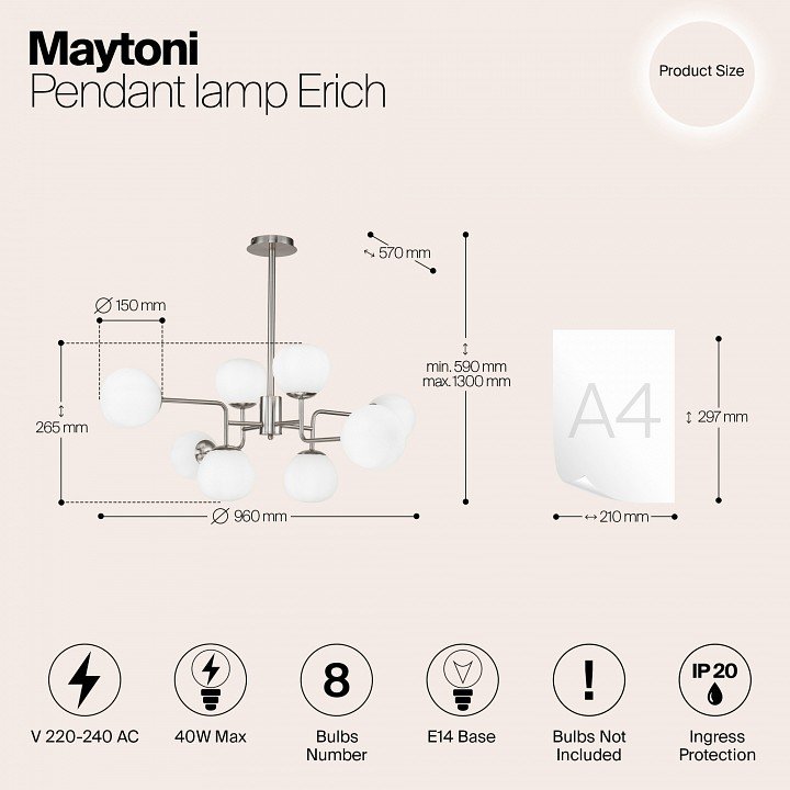 Станьте первым, кто оставит отзыв о товаре Люстра на штанге Maytoni Modern MOD221-PL-08-N.
