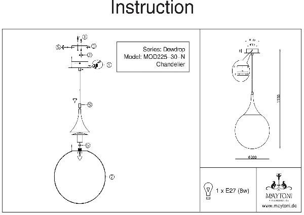 Станьте первым, кто оставит отзыв о товаре Подвесной светильник Maytoni Dewdrop P225-PL-300-N.