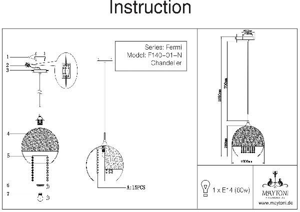 Станьте первым, кто оставит отзыв о товаре Подвесной светильник Maytoni Fermi P140-PL-170-1-N.