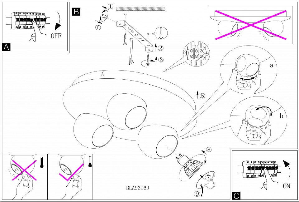 Направление плафонов: в разные стороны