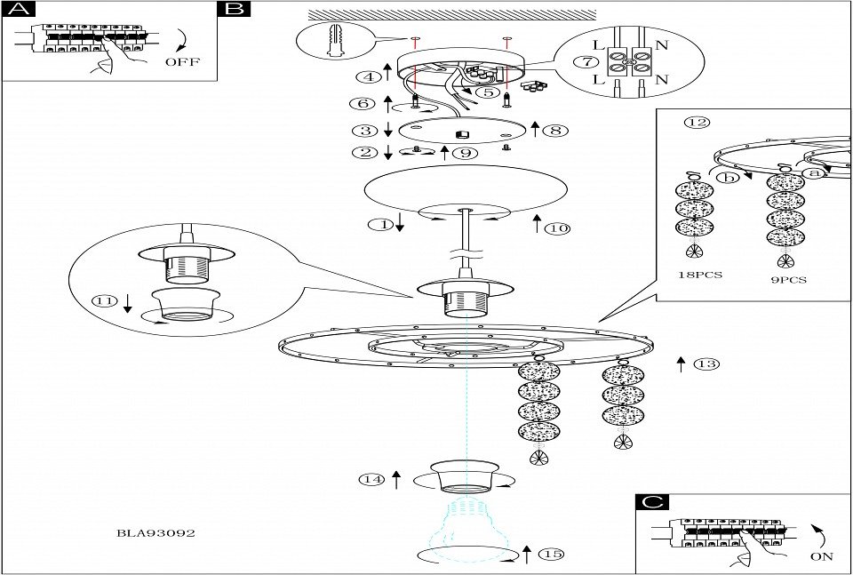 Направление плафонов: вниз