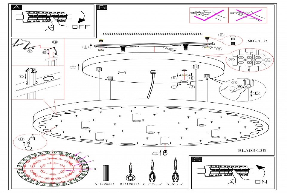 Направление плафонов: вниз