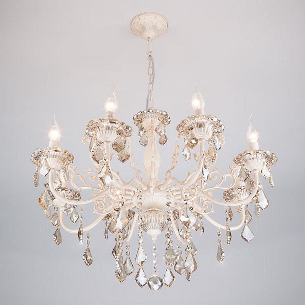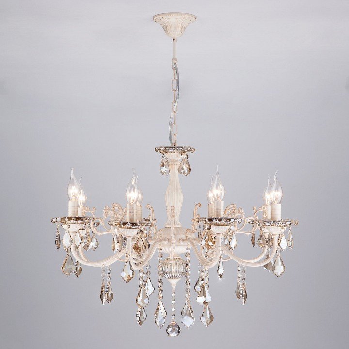 Главная Люстры и потолочные светильники Подвесная люстра Eurosvet 3281/8 белый с золотом/тонированный хрусталь Strotskis
