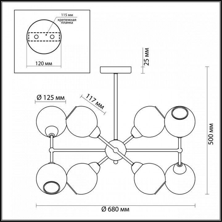 Тип крепления люстры: на штанге