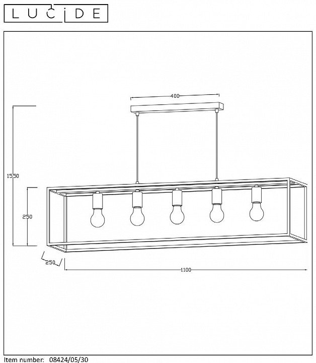 Станьте первым, кто оставит отзыв о товаре Подвесная люстра Lucide Arthur 08424/05/30.