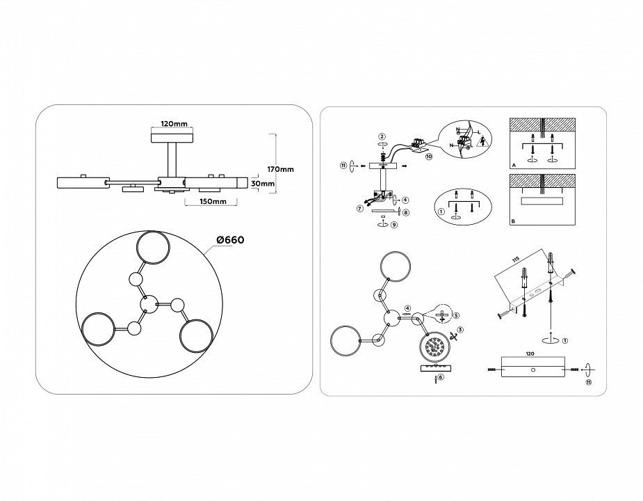 Цвет плафона: Белый, Черный